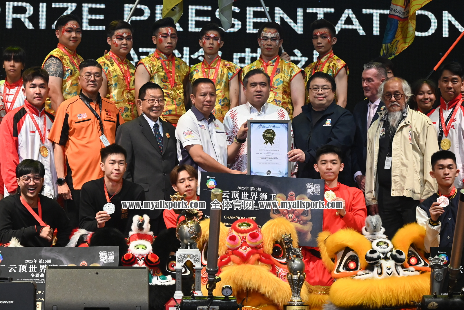 由云顶世界主办,马来西亚雪隆龙狮联合总会为大会顾问的第15届云顶世界狮王争霸战正式获颁《马来西亚纪录大全》认证为“全球最悠久的世界舞狮锦标赛”。
