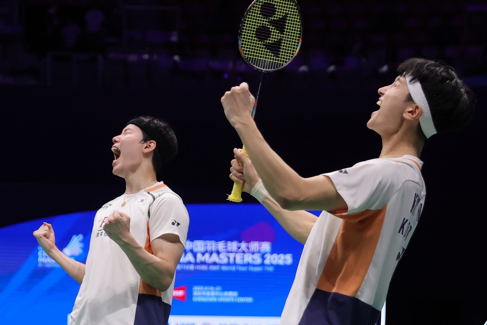压轴上演的男双决赛,世界冠军、韩国世界第一金元昊与徐承宰以21比19、21比15击败印度双塔兰基雷迪与塞迪,豪取本赛季第7冠并延续10连胜。他们此前已赢得大马、德国、日本和印尼公开赛、全英赛和世界赛冠军。