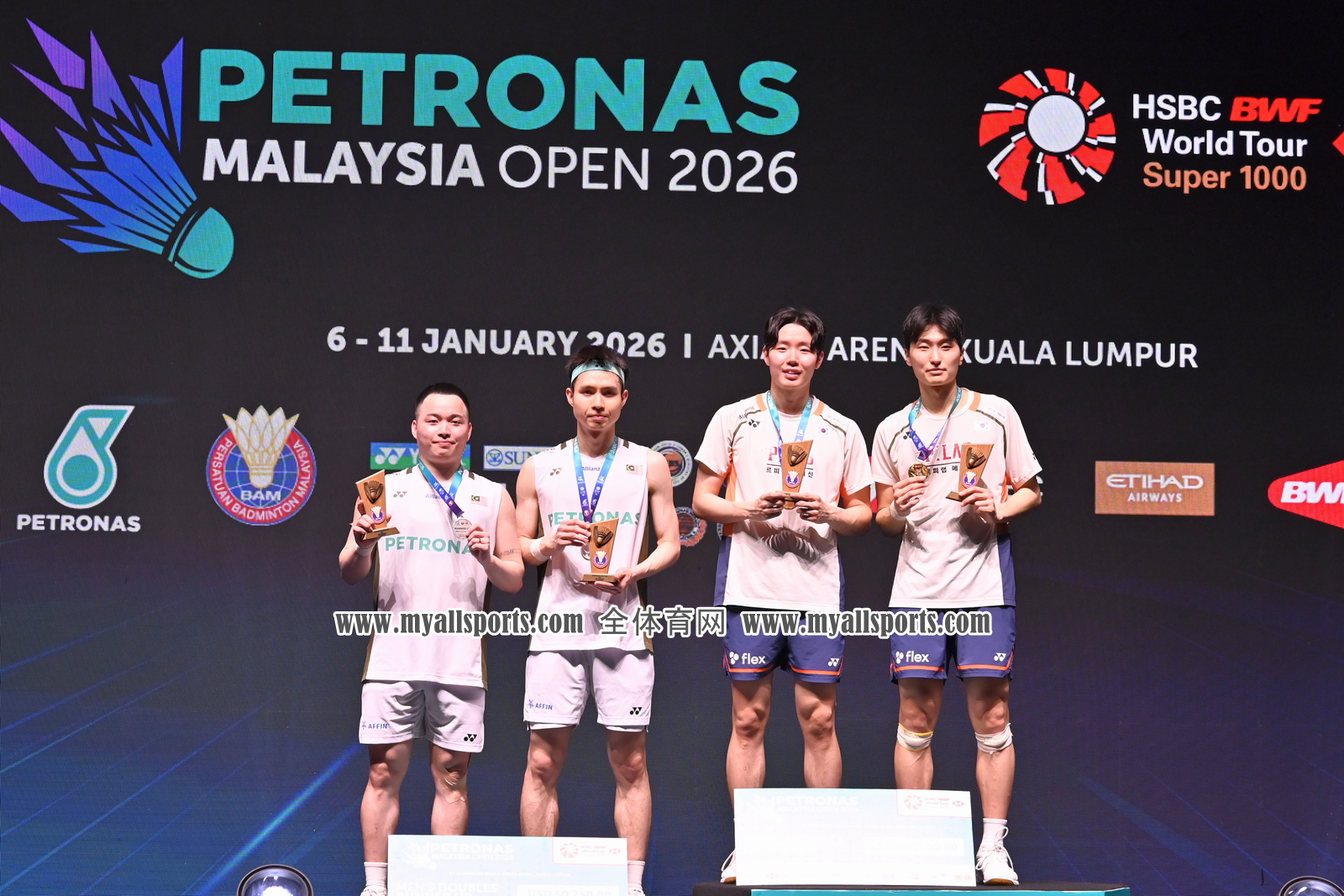 大马头号男双谢定峰与苏伟译在大马羽球公开赛男双决赛激战三局憾败韩国世界第一男双徐承宰与金元昊,再次在主场与冠军失之交臂,也无缘打破大马男双长达12年的冠军荒。