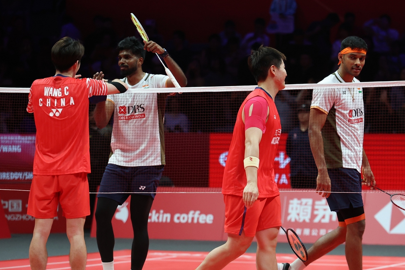 主场作战的中国男双梁伟铿与王昶成功复仇,面对小组赛力压他们夺得小组头名的印度“双塔”兰基雷迪与塞迪,以10比21、21比17、21比13逆转对手,时隔两年重回总决赛的决赛,将和韩国世界冠军金元昊与徐承宰争冠。