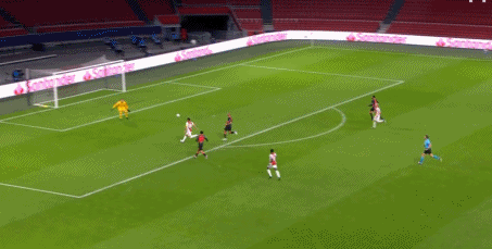 阿贾克斯第44分钟险些扳平,内雷斯斜传,塔迪奇单刀挑射越过阿德里安,法比尼奥及时在空门前倒钩解围。