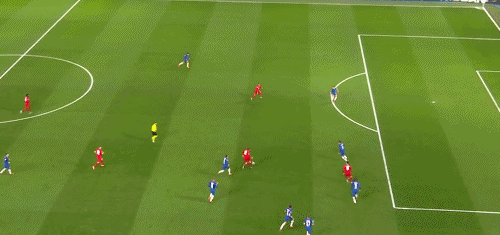 第35分钟,格纳布里左路传中,穆勒的头球攻门击中横梁弹出,切尔西逃过一劫。