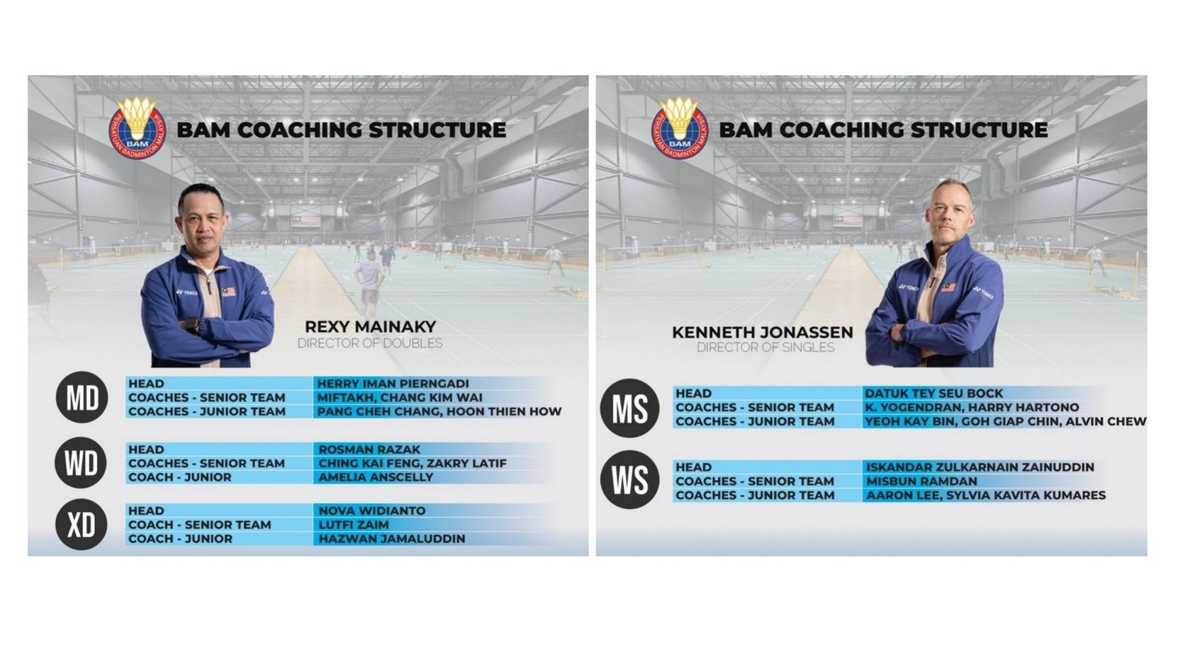 来自印尼的哈里哈托诺出任成年队男单教练,杨佳傧出任青年男单教练,而莫哈末扎克利则担任成年队女双教练。有关委任旨在从技术、战术、体能及心理层面,全面提升球员训练与发展质量。