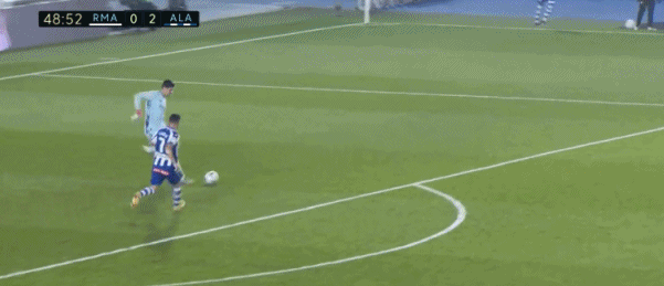 阿拉维斯第49分钟扩大优势,皇马门将库尔图瓦出现大失误,他的传球被何塞卢拦截后禁区前射入空门,2比0领先皇马。